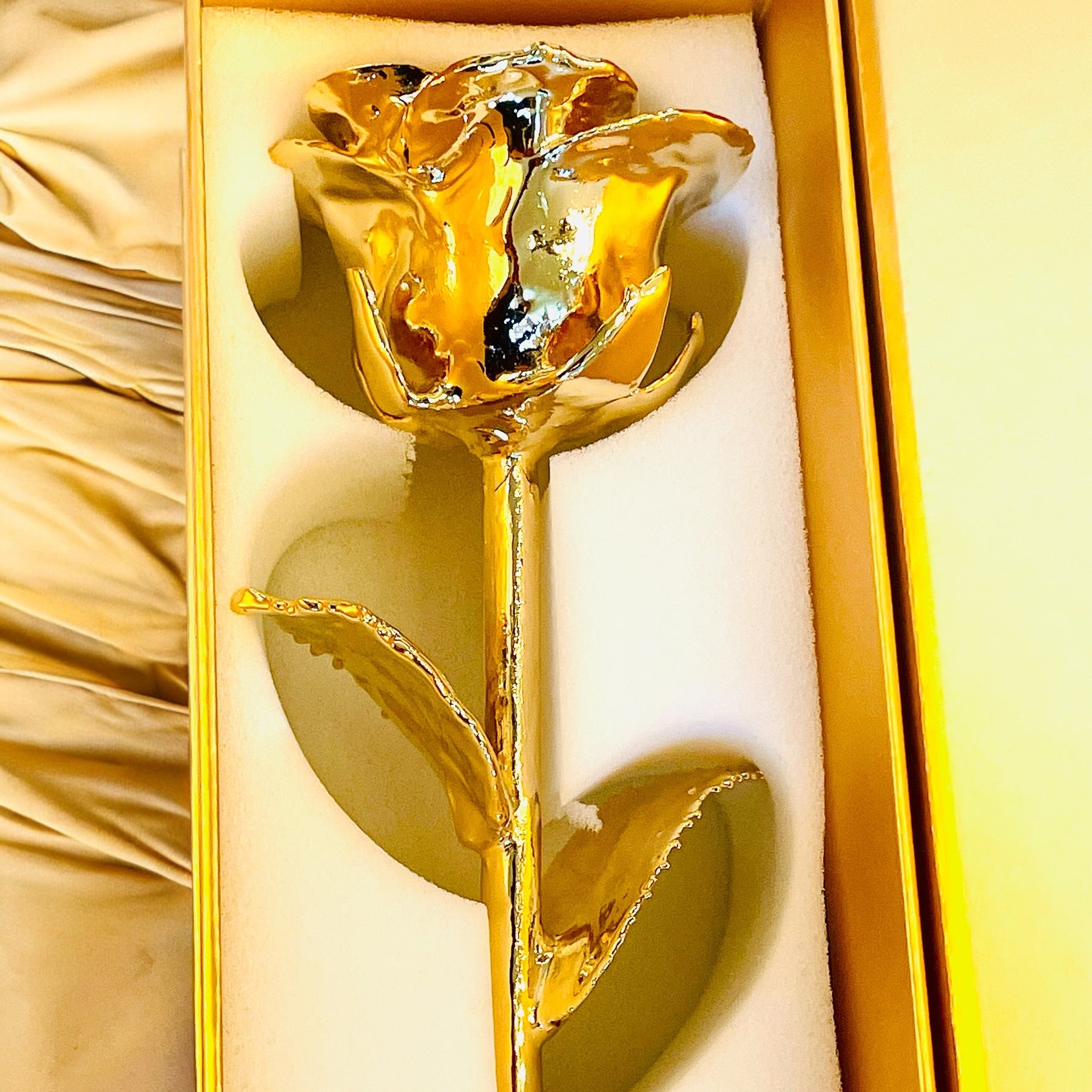 100% Natural Rose, 24K Gold Plated, 11 inches. Handcrafted to perfection by our highly skilled artisans in a meticulous 38-step process that takes 10 days to complete. Made in small batches, ensuring no two roses are alike. The 24K Rose guarantees this rose is genuine and authentic.